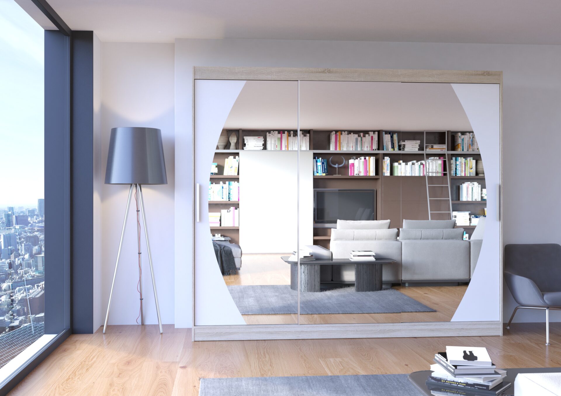 Stumdoma spinta su veidrodžiu CAMBE 250 Sonoma/Balta ADRK