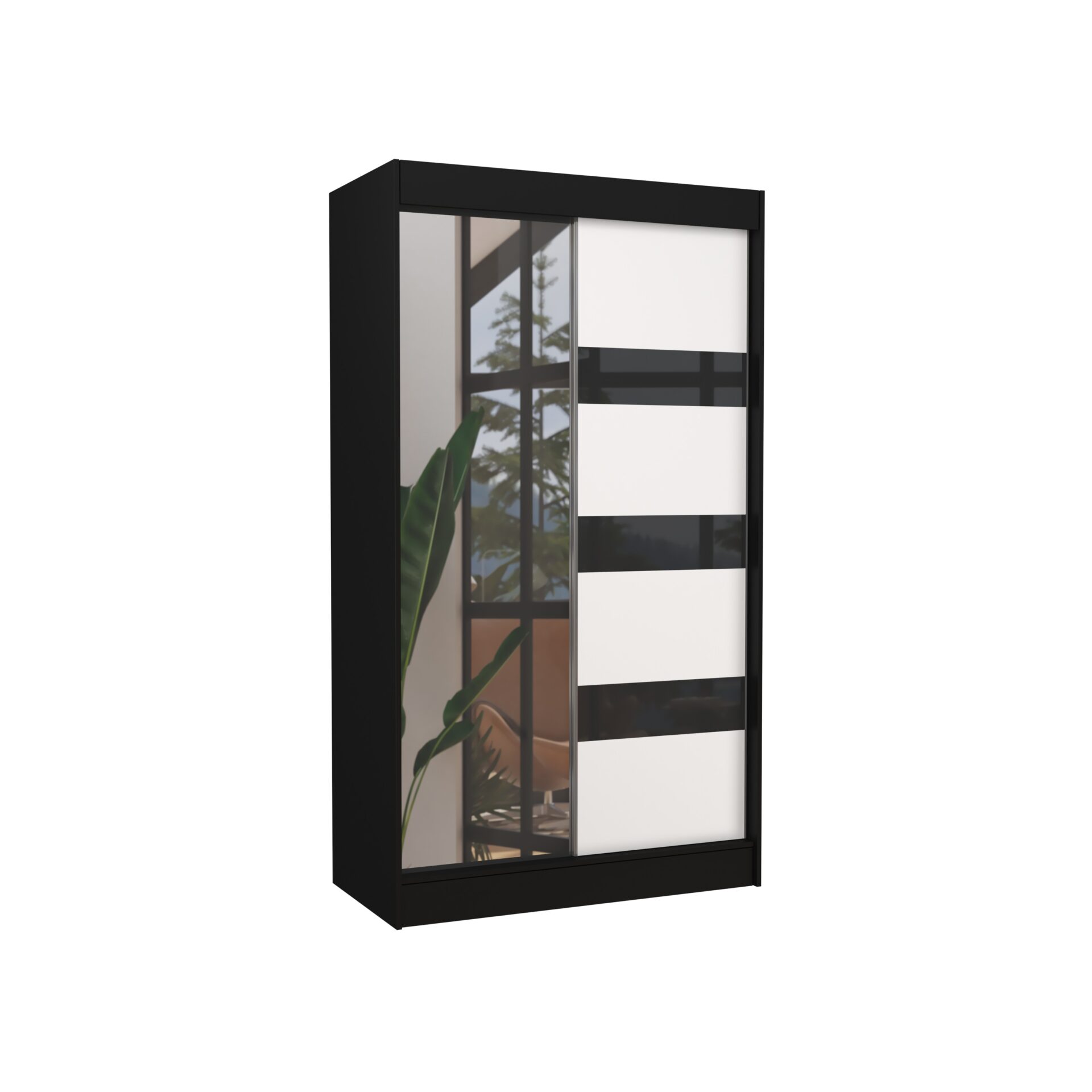 Stumdoma spinta su veidrodžiu ir užuolaidomis TOURA 120 juoda/balta ADRK