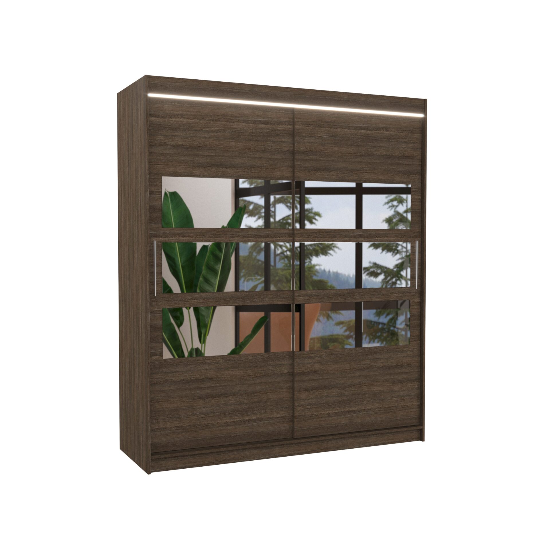 Раздвижной шкаф TOLEDO с зеркалом — идеальное решение для организации пространства. Он оснащен просторными полками и вешалкой для платьев, костюмов, верхней одежды и рубашек. Горизонтальные зеркала, прикрепленные к передней части, визуально расширяют пространство и добавляют уникальный стильный штрих. Благодаря раздвижной конструкции вам не нужно создавать дополнительное пространство для открытия дверей, что делает его идеальным решением для небольшой комнаты или узкого коридора. Яркой особенностью является эффектная светодиодная подсветка, которая добавляет очарования как шкафу, так и помещению.
