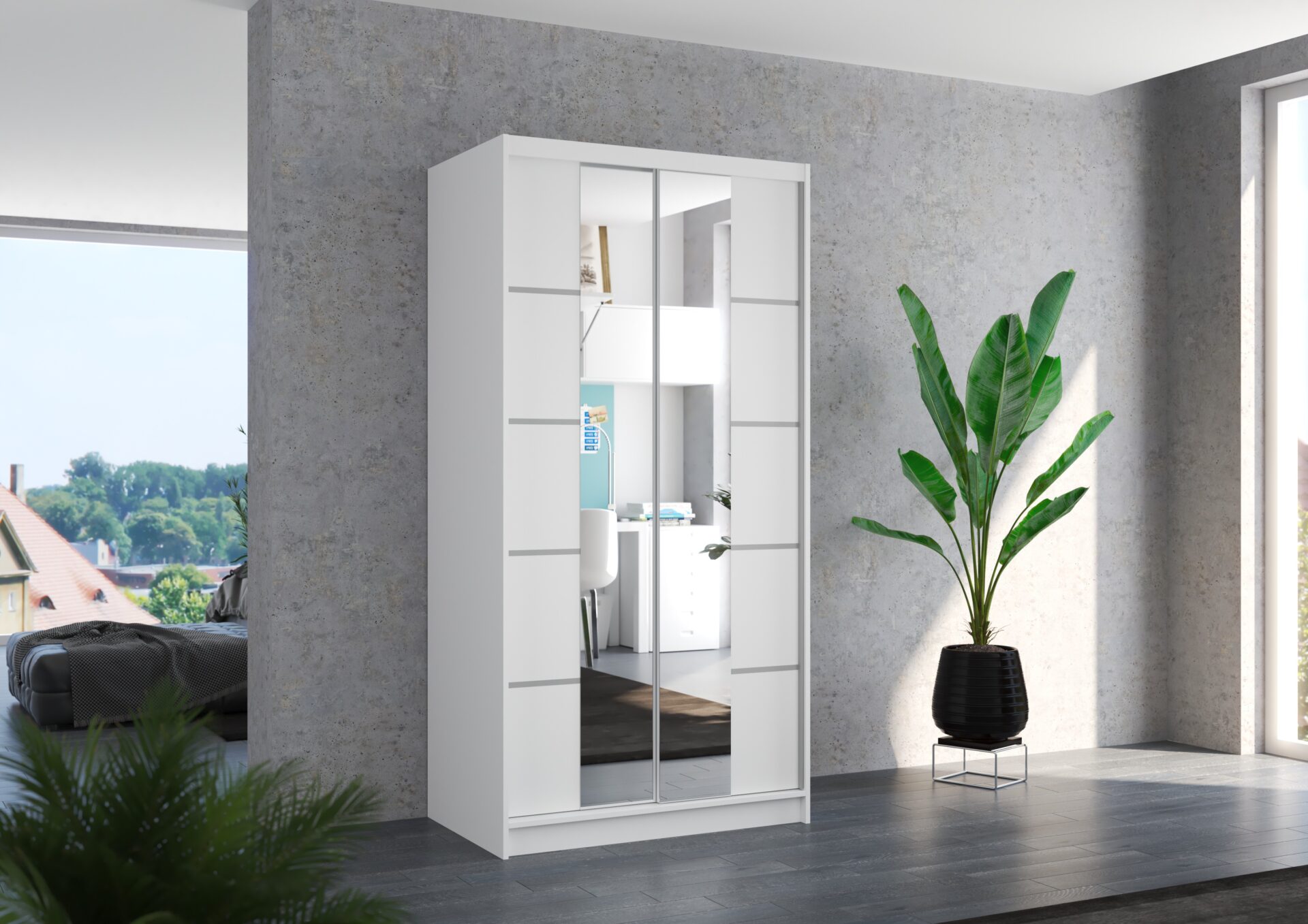 Stumdoma spinta su veidrodžiu KSAWER 100 balta ADRK