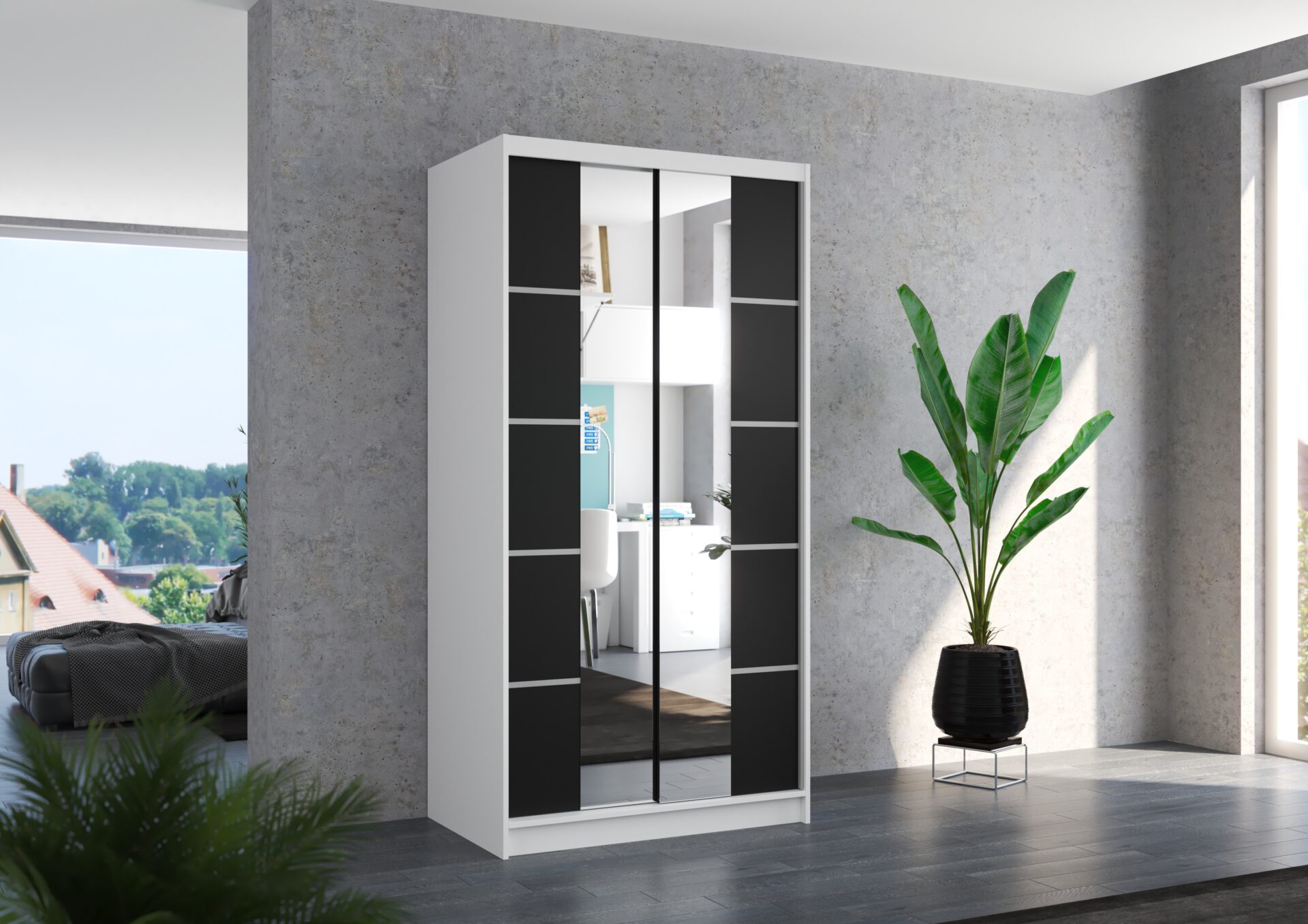 Раздвижной шкаф KSAWER — идеальное решение для организации пространства. Он оснащен просторными полками и штангой для вешалок, на которых можно хранить платья, костюмы, верхнюю одежду и рубашки. Передняя панель украшена зеркалом и декоративными серебристыми горизонтальными полосами, что придает изделию уникальный стиль. Благодаря раздвижной конструкции вам не нужно создавать дополнительное пространство для открытия дверей, что делает его идеальным решением для небольшой комнаты или узкого коридора.