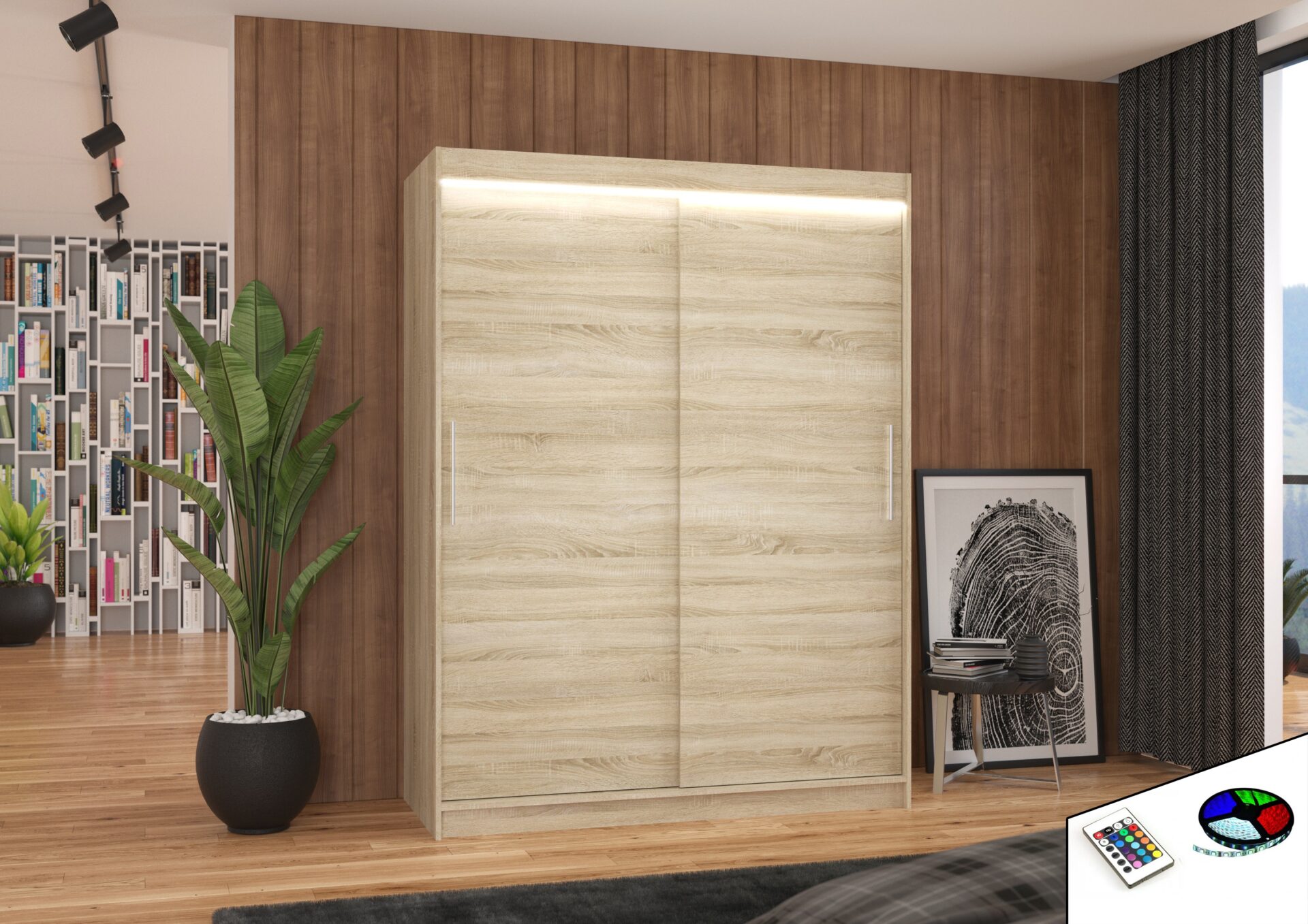 Раздвижной шкаф DENVER — идеальное решение для организации пространства. Он оснащен просторными полками и штангой для вешалок, на которых можно хранить платья, костюмы, верхнюю одежду и рубашки. Благодаря раздвижной конструкции вам не нужно создавать дополнительное пространство для открытия дверей, что делает его идеальным решением для небольшой комнаты или узкого коридора. Особую изюминку придает эффектная светодиодная подсветка, которая добавляет очарования как самому шкафу, так и помещению.