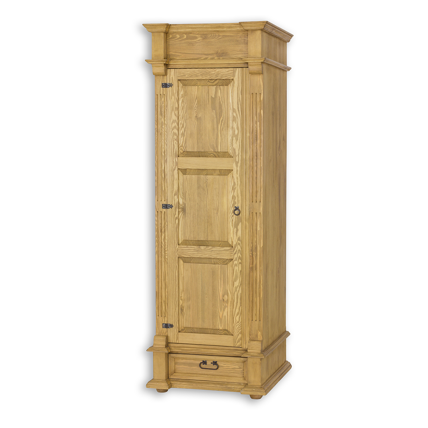 Шкаф SF837, покрытый воском, выполнен в деревенском стиле и полностью изготовлен из массива сосны. За единственной дверцей расположены три полки. Кроме того, шкаф оснащен выдвижным ящиком на деревянных направляющих. Мебель отличается прочной и надежной конструкцией. Деревянный шкаф имеет уникальную отделку карнизом. Этот декоративный элемент добавляет шкафу элегантности и изысканности. При его изготовлении использованы изготовленные вручную металлические ручки и петли с эффектом состаривания. Сосновый шкаф SF837 — идеальное решение для гардероба, прихожей или спальни. Он добавит неповторимую атмосферу любому интерьеру, наполненную теплом и уютом. Его функциональность значительно упростит хранение вещей.