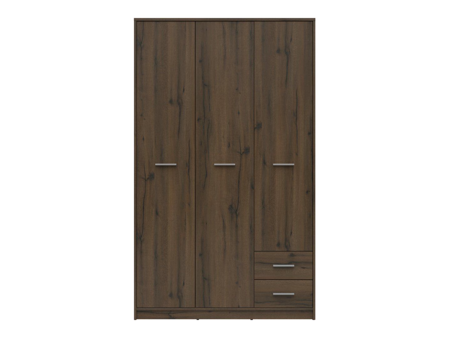 Шкаф изготовлен из ламинированной плиты, что делает его устойчивым к царапинам и перепадам температуры. Ламинат также облегчает уход за ним, что делает его идеальным решением для детской комнаты, комнаты подростка или даже офиса. Благородный дубовый цвет придает шкафу современный и универсальный характер. Особенности: Трехдверная конструкция – просторная и функциональная. Две верхние полки и две штанги для вешалок – удобная организация одежды. Два компактных ящика – идеально подходят для нижнего белья и аксессуаров. Дополнительные полки – расширяемые тремя широкими или двумя узкими полками. Ламинированная поверхность – устойчива к царапинам и легко чистится. Благородный дубовый цвет – универсальный стиль. Простые ручки – удобны в использовании. Резюме