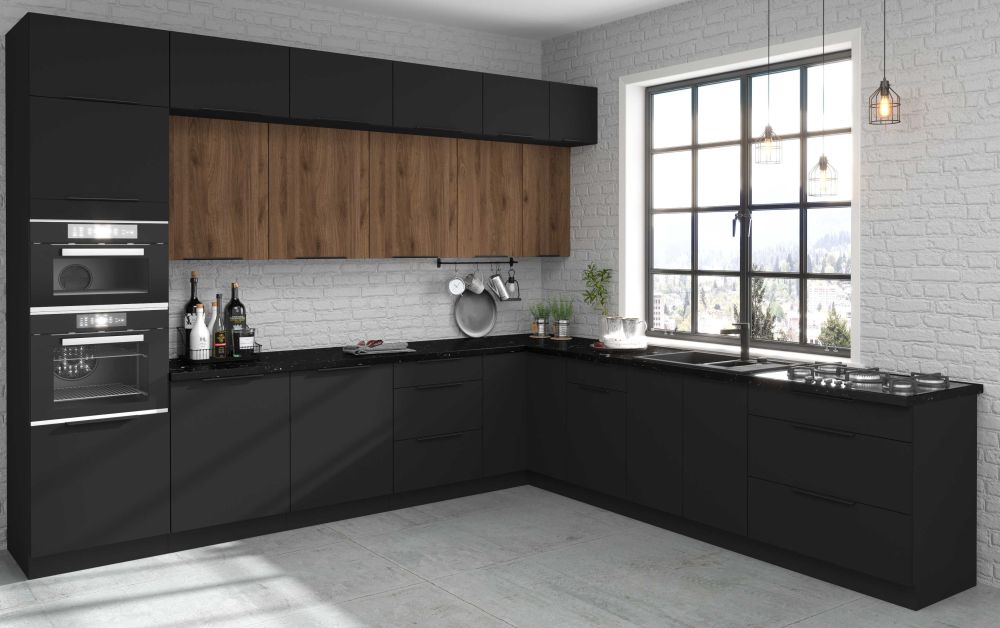 Кухня Monza — это комплект современной мебели с отделкой под дерево, которая впишется в любой интерьер.