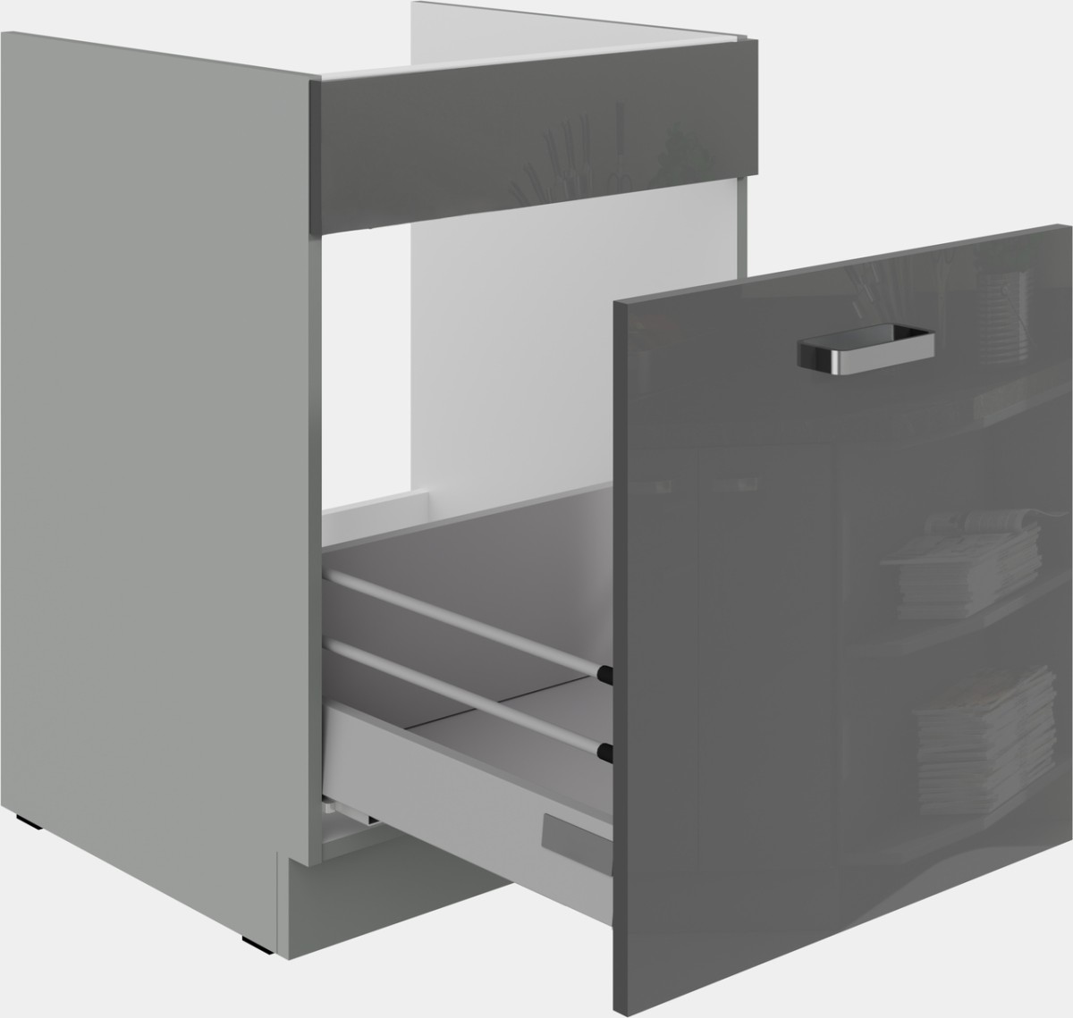 Нижний шкаф 80 см, серый 80 ZL 1S BB, мойка с выдвижным ящиком, PREMIUM BOX – шкаф без столешницы – для шкафа доступны 3 контейнера по 15 л.