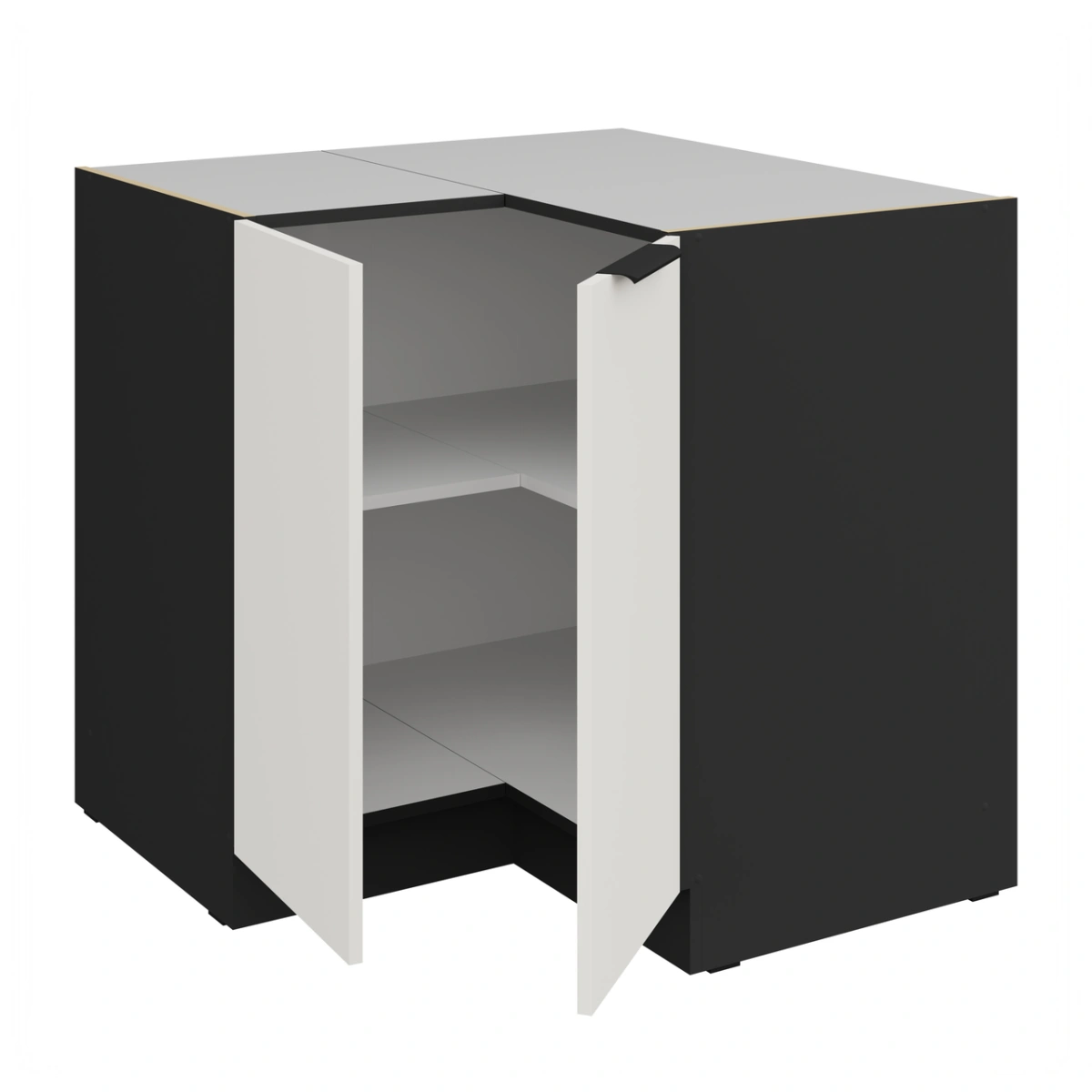 Угловой тумба под шкаф Nessa 90×90 ND 2F BB 90/90 см – шкаф с полкой, без доводчика.