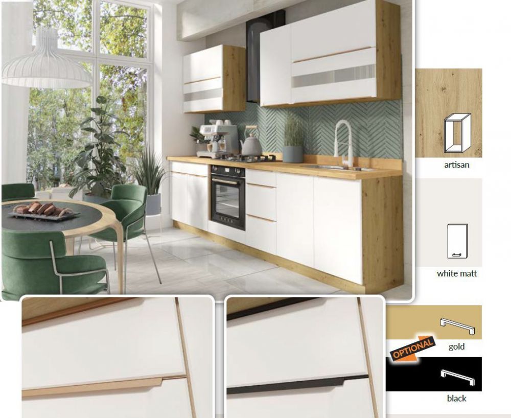 Фасады – матовый белый, матовый зеленый или матовый темно-синий.