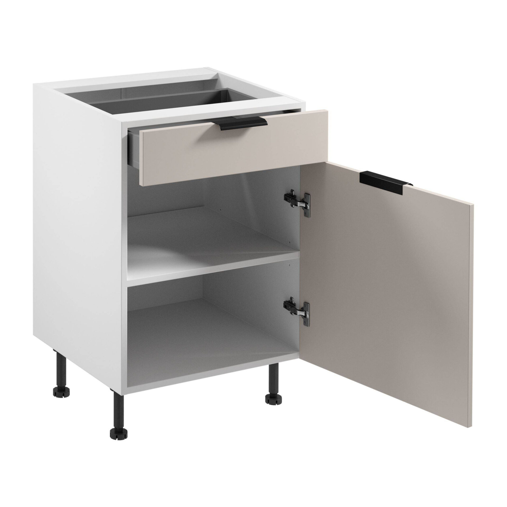 Apatinė virtuvės spintelė 1D1S su stalo įrankių įdėklu Sorento D60S1 P/L AX matinė balta matinė smėlio spalvos
