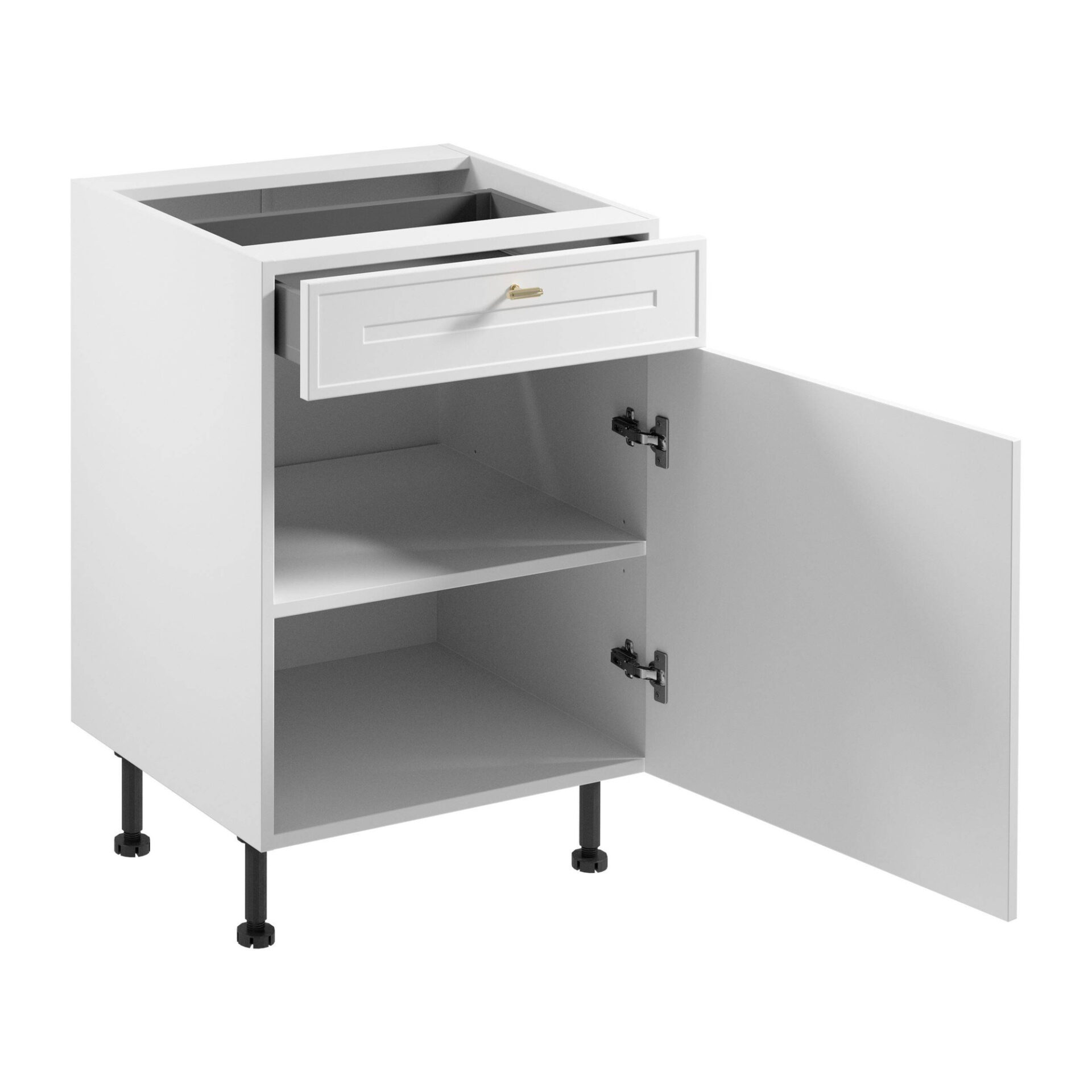 Откройте для себя красоту и функциональность в одном изделии – кухонном шкафу Sorento Lower Kitchen Cabinet, сочетающем современный дизайн и практичность. Выполненный в элегантном матовом белом цвете, он добавит изысканности любой кухне, независимо от ее стиля. Золотистые металлические ручки ненавязчиво контрастируют с белым цветом, добавляя роскоши всему интерьеру. Это отличный выбор для тех, кто ценит как эстетику, так и повседневную функциональность. Просторные выдвижные ящики и отделение для столовых приборов облегчают организацию и хранение вещей, повышая комфорт. Петли Clip-On и система плавного закрывания обеспечивают плавное и мягкое закрывание, что особенно важно в помещениях, где необходима тишина. Регулируемые ножки гарантируют устойчивость на любой поверхности, а их регулировка позволяет легко адаптировать шкаф к неровным полам. Шкаф изготовлен из высококачественного МДФ и ламинированной плиты, что делает его не только устойчивым к повреждениям, но и стильным на долгие годы. Это инвестиция в качество, которая прослужит долго, гарантируя ваше удовлетворение покупкой. Благодаря полному выдвижению направляющих, каждый момент, проведенный на кухне, станет источником комфорта и удовольствия.