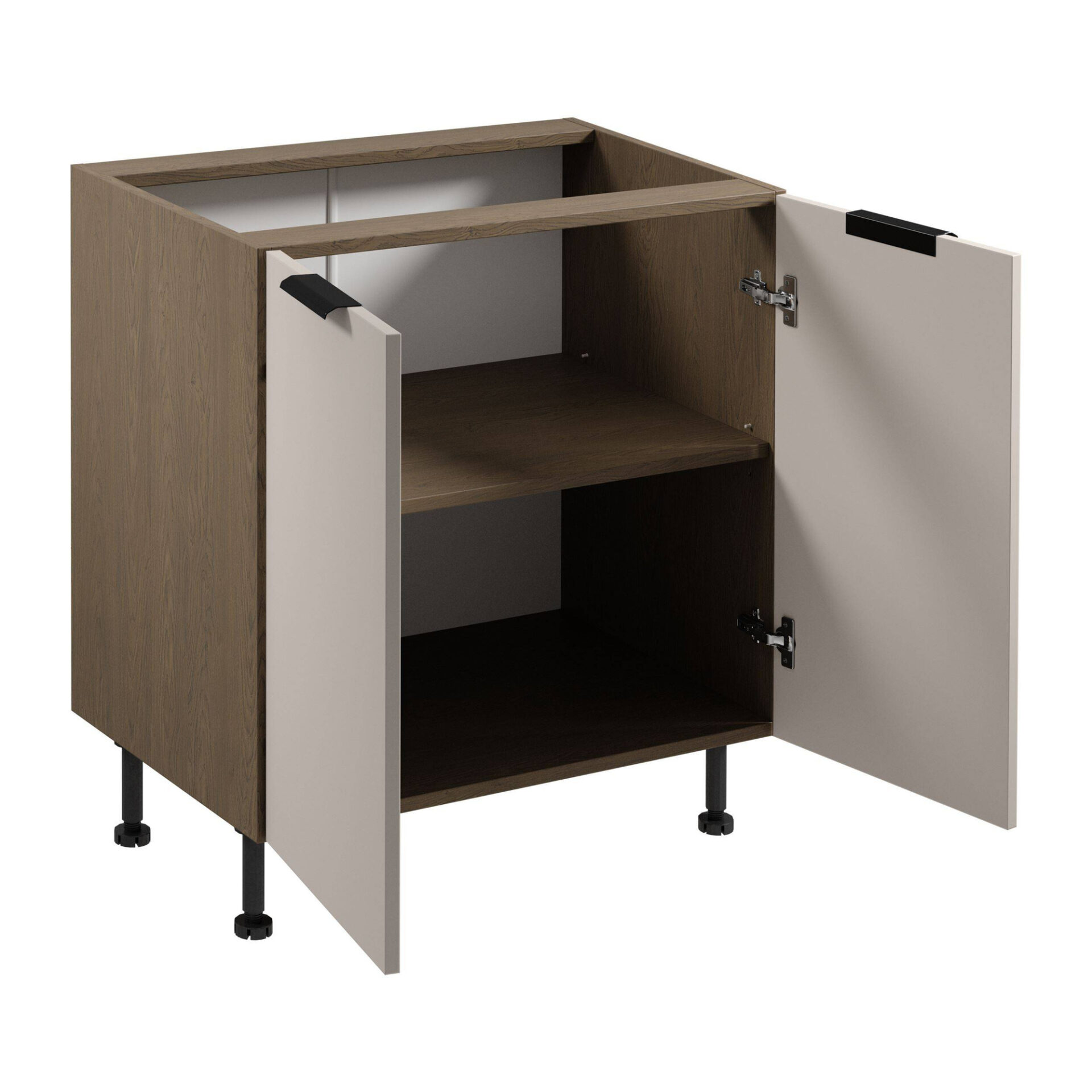 Превратите свою кухню в современное пространство, наполненное элегантностью, с помощью базового шкафа Sorento D80 в матовом бежевом цвете. Этот шкаф идеально сочетает в себе элегантность и функциональность, предлагая стильный дизайн от Baltic Storm, который, несомненно, дополнит эстетику вашей кухни. Сдержанный матовый бежевый фасад добавляет изысканности и тепла интерьеру, создавая уютную атмосферу. Вы оцените эргономичность и функциональность этого шкафа в повседневном использовании. Петли Clip-On с функцией плавного закрывания делают открывание и закрывание дверей не только легким, но и приятным. Прочная черная металлическая ручка добавляет характера и современности, гармонируя с общей эстетикой шкафа. Шкаф Sorento D80 был разработан с учетом практичности. Ламинированная плита, используемая для фасадов и корпуса, обеспечивает долговечность и устойчивость к ежедневному использованию. Это особенно полезно в динамичной кухонной среде, где мебель подвергается воздействию влаги и грязи. Регулируемые ножки позволяют настроить высоту в соответствии с вашими потребностями, делая этот шкаф еще более функциональным.
