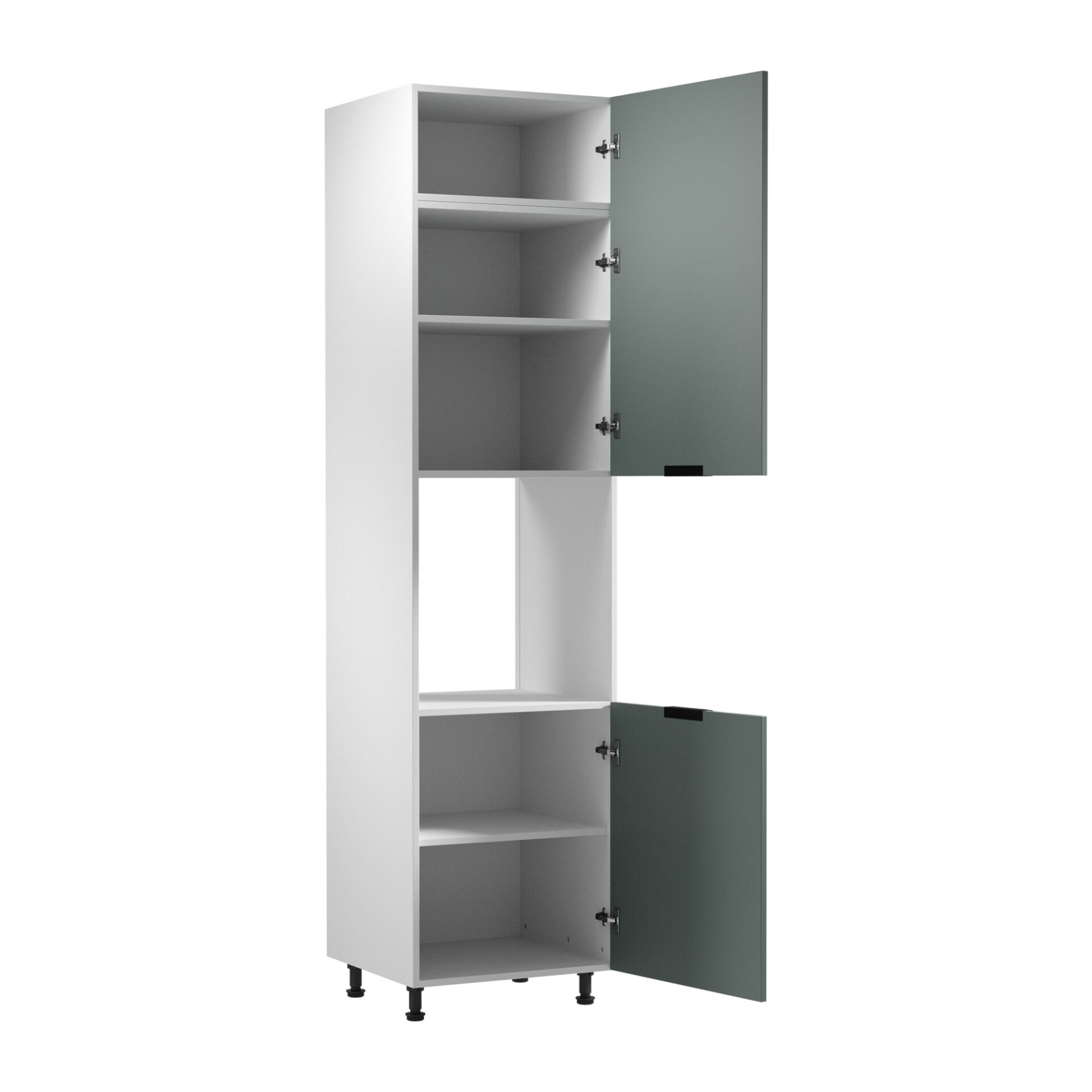 Откройте для себя уникальный кухонный шкаф Sorento 2D с духовкой – предмет мебели, который привнесет современный стиль в вашу кухню. Этот элегантный шкаф шириной 60 см сочетает в себе функциональность и эстетику, предлагая прекрасное сочетание матового белого цвета с зелеными фасадами. Его минималистичный дизайн идеально впишется в модные интерьеры, подчеркнув ваш индивидуальный вкус и внимание к деталям. Практичность и современность идут рука об руку – благодаря продуманной конструкции шкаф Sorento позволяет встроить духовку, что особенно ценится на небольших кухнях. Высокие регулируемые по высоте ножки не только обеспечивают устойчивость, но и облегчают уборку под шкафом. Дизайн без видимых ножек привносит гармонию и легкость в кухонное пространство. Изготовленный из ламинированной плиты толщиной 18 мм, шкаф особенно устойчив к повреждениям, обеспечивая длительный срок службы и простоту в уходе. Металлические ручки в элегантной черной отделке дополняют дизайн, добавляя шкафу современный характер. Благодаря бесшумным петлям Clip-On, открывание и закрывание дверцы становится удовольствием, исключая шум, что является существенным преимуществом в повседневном использовании.