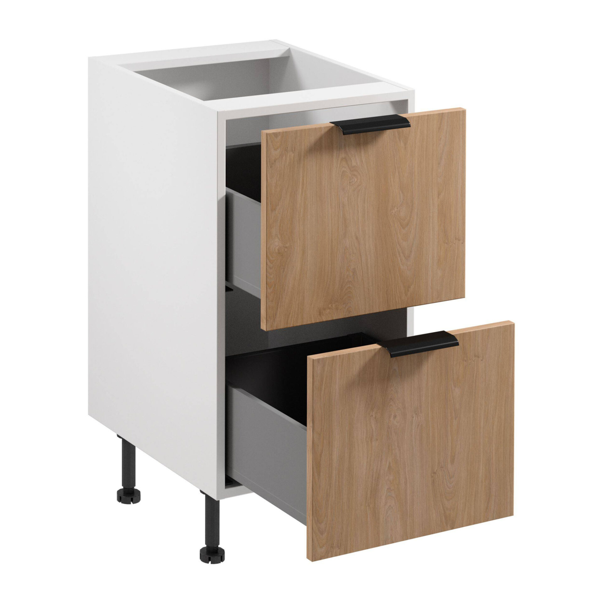 Нижний кухонный шкаф Sorento D45S2 AX 2S в цвете Puccini идеально впишется в любую современную кухню. Его безупречный матовый белый корпус создает минималистичный дизайн, подчеркивая элегантность и утонченность интерьера. Фасад в цвете Puccini придает шкафу выразительный, привлекательный характер, отличающий его от других кухонных гарнитуров. Благодаря компактным размерам — 45 см в ширину, 52 см в глубину и 87 см в высоту — шкаф позволяет оптимально использовать пространство без ущерба для функциональности. Высококачественная ламинированная плита, используемая как для фасада, так и для самого шкафа, обеспечивает долговечность и устойчивость к ежедневному использованию. Это идеальное решение для тех, кто ценит практичные и эстетические детали в дизайне интерьера. Черные металлические ручки добавляют современный вид, гармонично контрастируя со светлыми оттенками шкафа и фасада. Шкаф оснащен двумя выдвижными ящиками для удобной организации и быстрого доступа к необходимым кухонным принадлежностям. Благодаря полному выдвижению направляющих, использование ящиков чрезвычайно удобно, обеспечивая бесшумную и плавную работу.