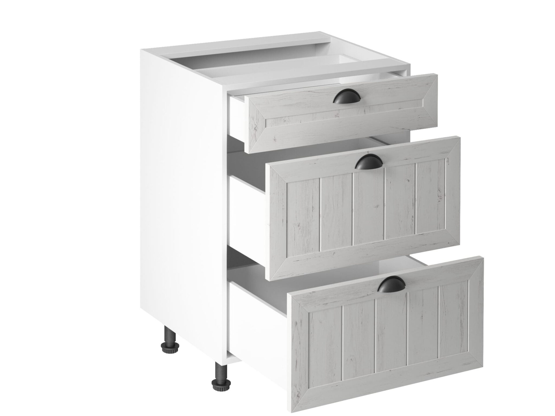 Apatinė virtuvės spintelė su 3 stalčiais, D60S3, provanso pušis, Andersen balta matinė
