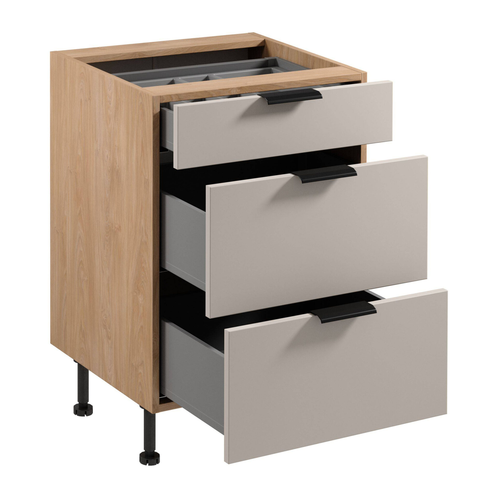 Apatinė virtuvės spintelė 3S su stalo įrankių įdėklu Sorento D60S3 AX Puccini matinės smėlio spalvos