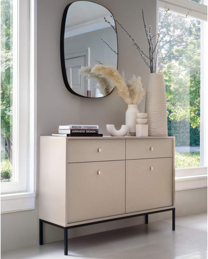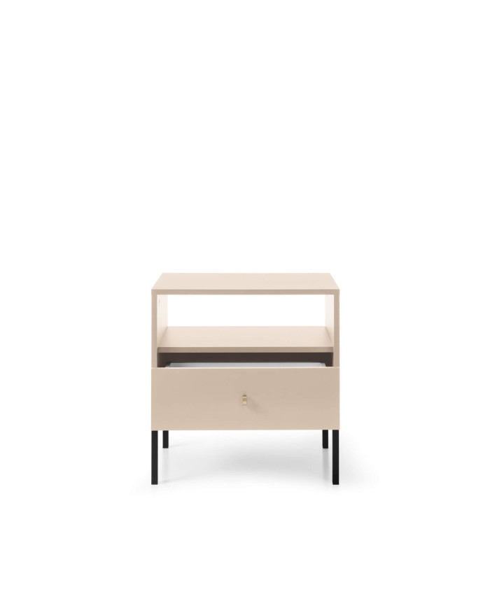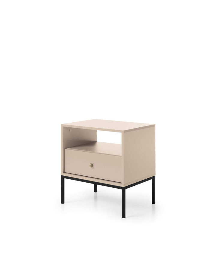 Mono MS54 naktinis staliukas, stalčius, niša, smėlio spalvos/juodas rėmas