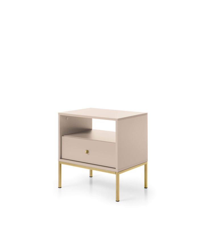 Mono MS54 naktinis staliukas su stalčiumi, įduba, smėlio spalvos/aukso spalvos rėmas