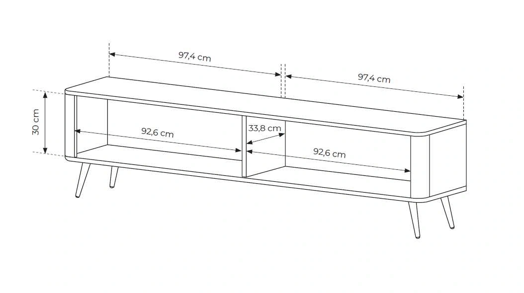 Lante TV spintelė 200 cm ant aukštų kojelių, juoda