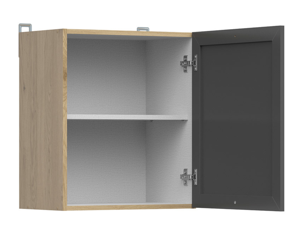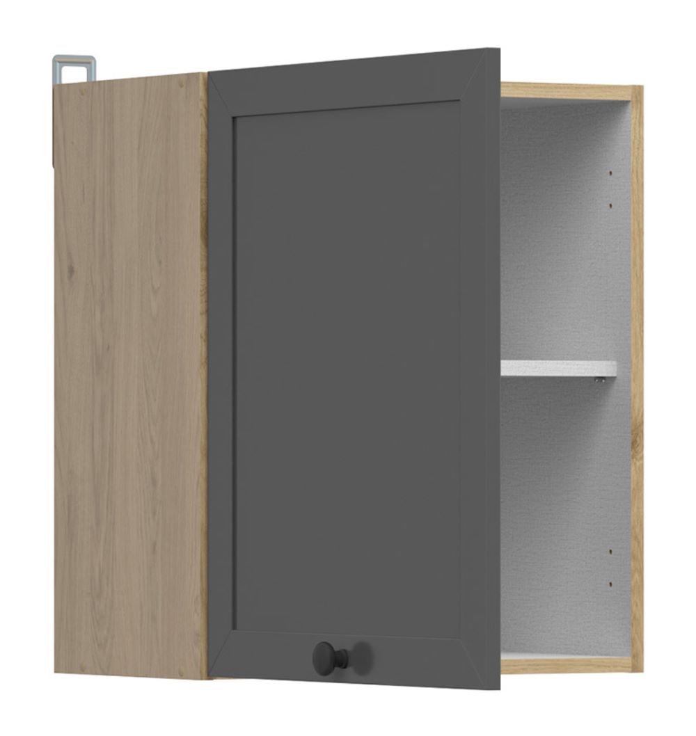 Верхний шкаф из коллекции Junona размером 50×57 см — это практичное решение, которое поможет вам поддерживать порядок на кухне. Он позволяет организованно хранить посуду, столовые приборы и кухонные принадлежности. Фасады графитового цвета и корпус из дуба Bernstein придают шкафу современный вид, который дополнит различные интерьеры. Внутреннее пространство шкафа спроектировано таким образом, чтобы вместить множество предметов, позволяя поддерживать порядок и легко находить то, что вам нужно. Верхний шкаф идеально подходит для хранения посуды и кухонных принадлежностей, помогая эффективно организовать кухонное пространство. Настенный монтаж прост. Просто установите дюбели с крючком и повесьте шкаф на стену. Этот шкаф из коллекции Junona не только функционален, но и эстетически привлекателен, что делает его привлекательным дополнением к вашей кухне. Кроме того, возможность открывания справа или слева позволяет настроить его в соответствии с вашими индивидуальными потребностями и предпочтениями.