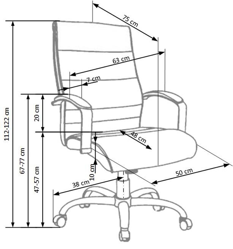 Механизм наклона, размеры: 63/51/112÷122 см, материал: зернистая кожа / ПВХ, цвет: черный