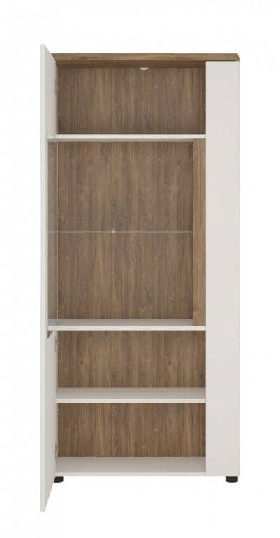 Toledo TOLV02L – Kairinė vitrina, 1 durų, balta/Stirling ąžuolas
