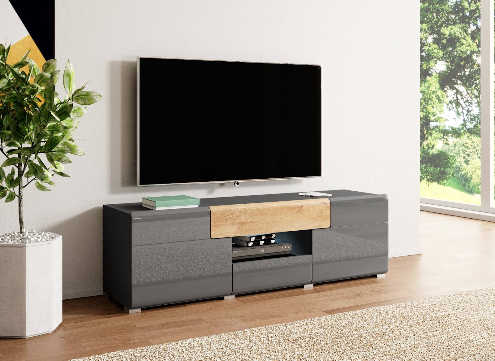 Выберите тумбу под телевизор Toledo WM Small в глянцевом антрацитовом цвете / цвете «дуб Грандсон» и добавьте в свой интерьер новое измерение стиля, функциональности и долговечности. Элегантность и современность — синонимы этого уникального предмета из коллекции Toledo Helvetia.