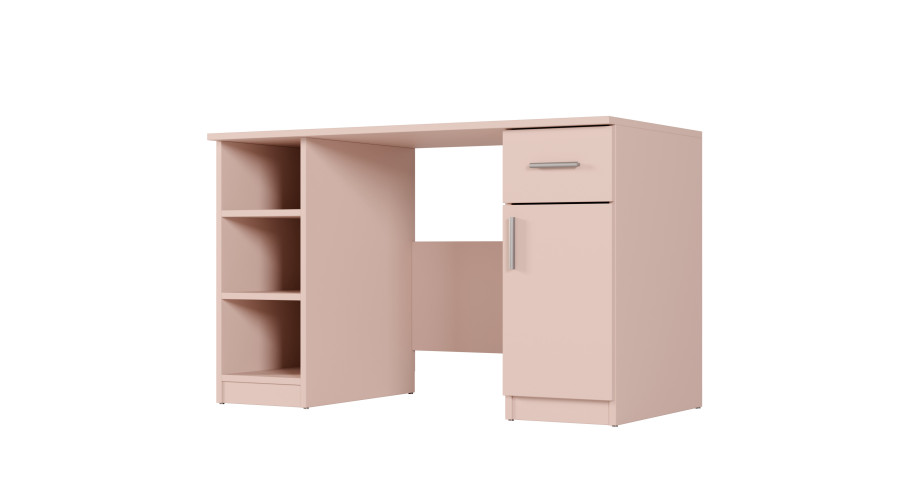 Розовый цвет придает столу дружелюбный, детский характер и помогает создать теплую, позитивную атмосферу в детской комнате. Нежный цвет хорошо сочетается с другой детской мебелью и может стать гармоничным элементом в учебном и игровом пространстве. Стол изготовлен из ламинированной плиты толщиной 18 мм, что обеспечивает структурную стабильность и долговечность при ежедневном использовании. Кромка из ПВХ защищает края от механических повреждений, а задние панели из HDF усиливают всю конструкцию.