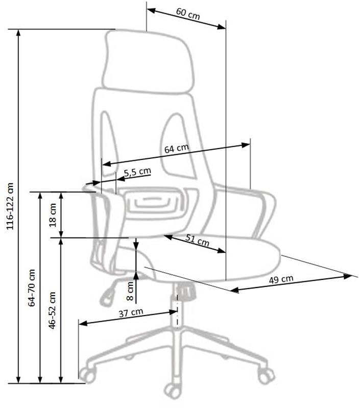 Размеры: 64/60/116-122/46-52 см, механизм наклона / регулируемый подголовник, ткань с эффектом памяти / сетка, цвет: черный