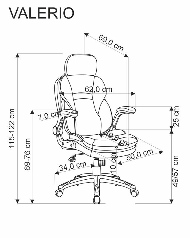 Размеры: 67/69/120-128/49-57 см; механизм наклона, экокожа/ткань. цвет: черный / серый