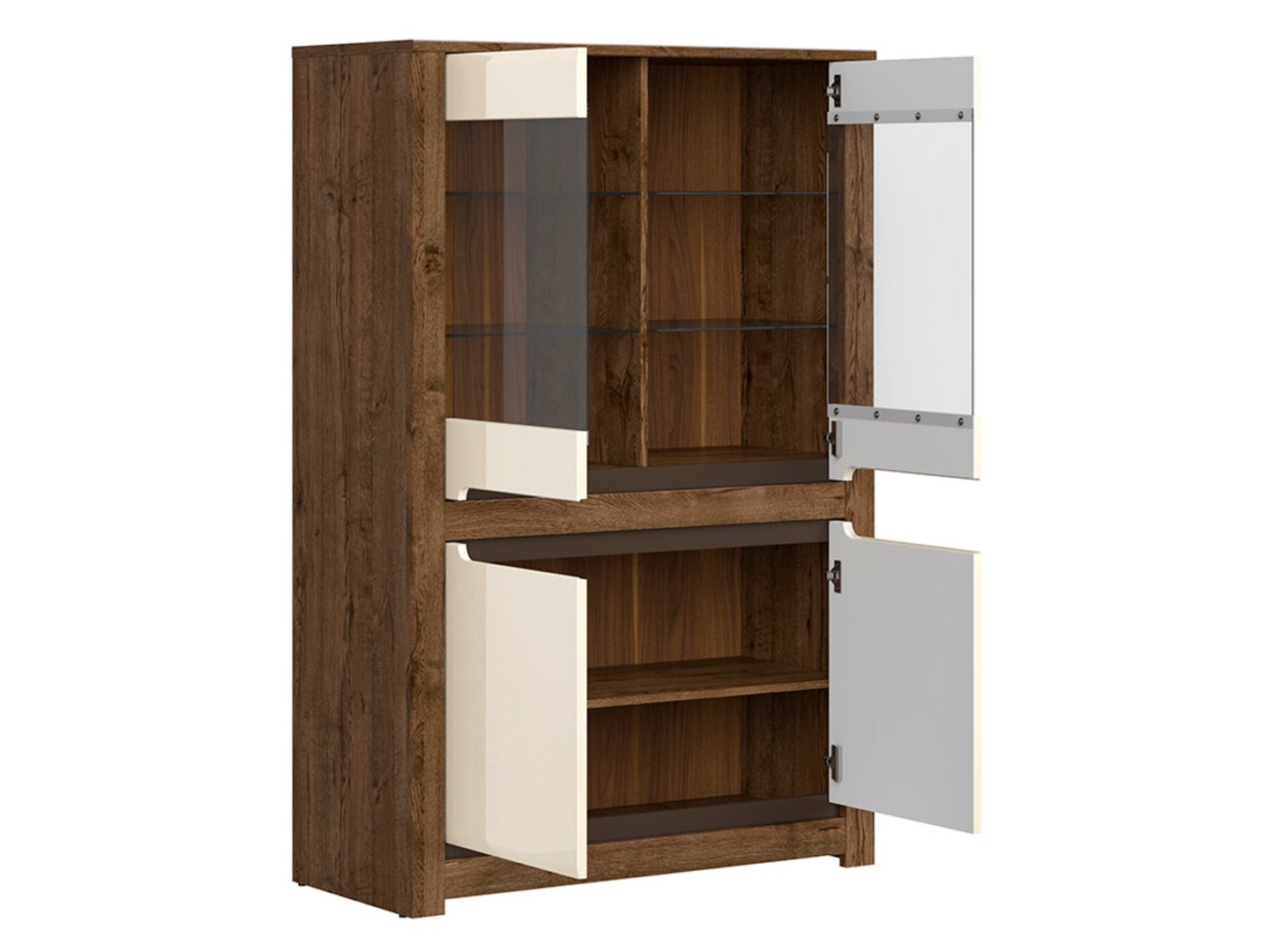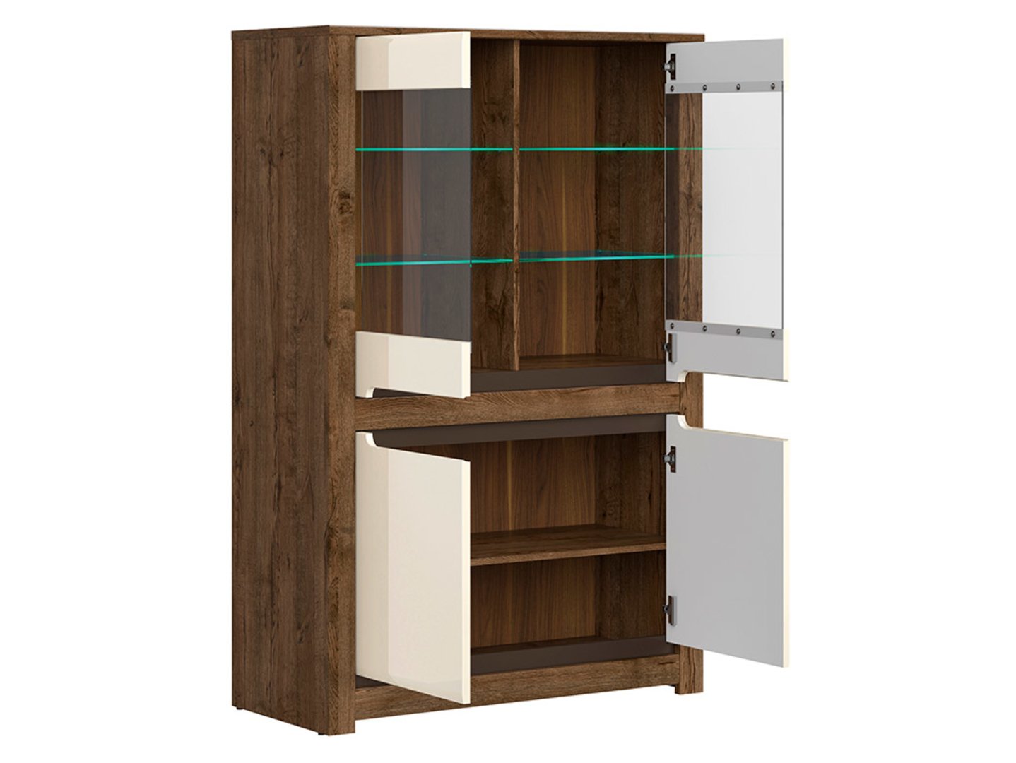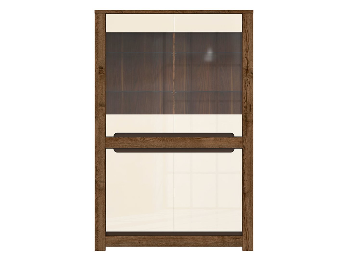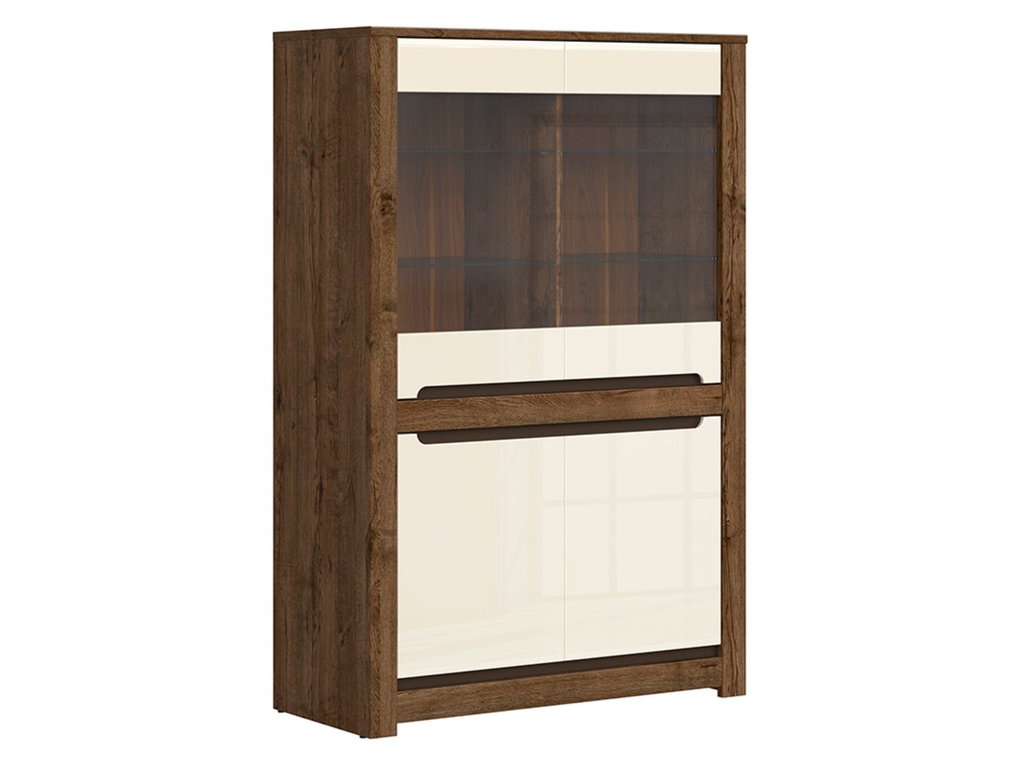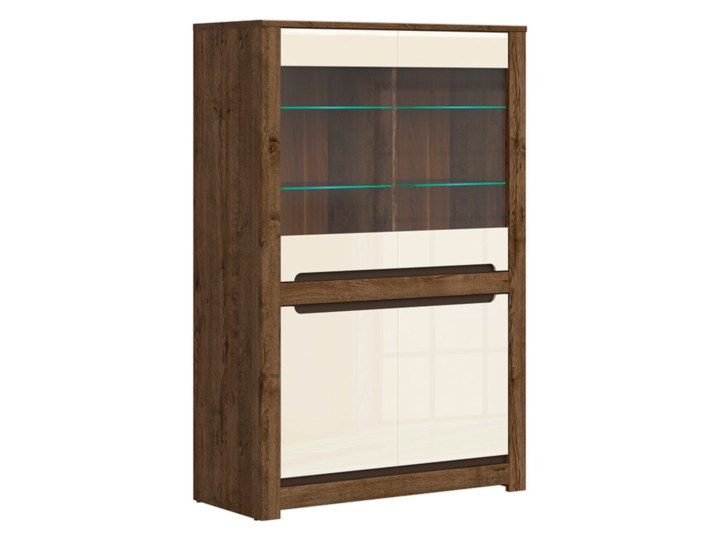 Dviejų durų vitrina su dviem stikliniais fasadais RUSO 104 cm, balandžio ąžuolo spalvos/perlamutrinio blizgesio