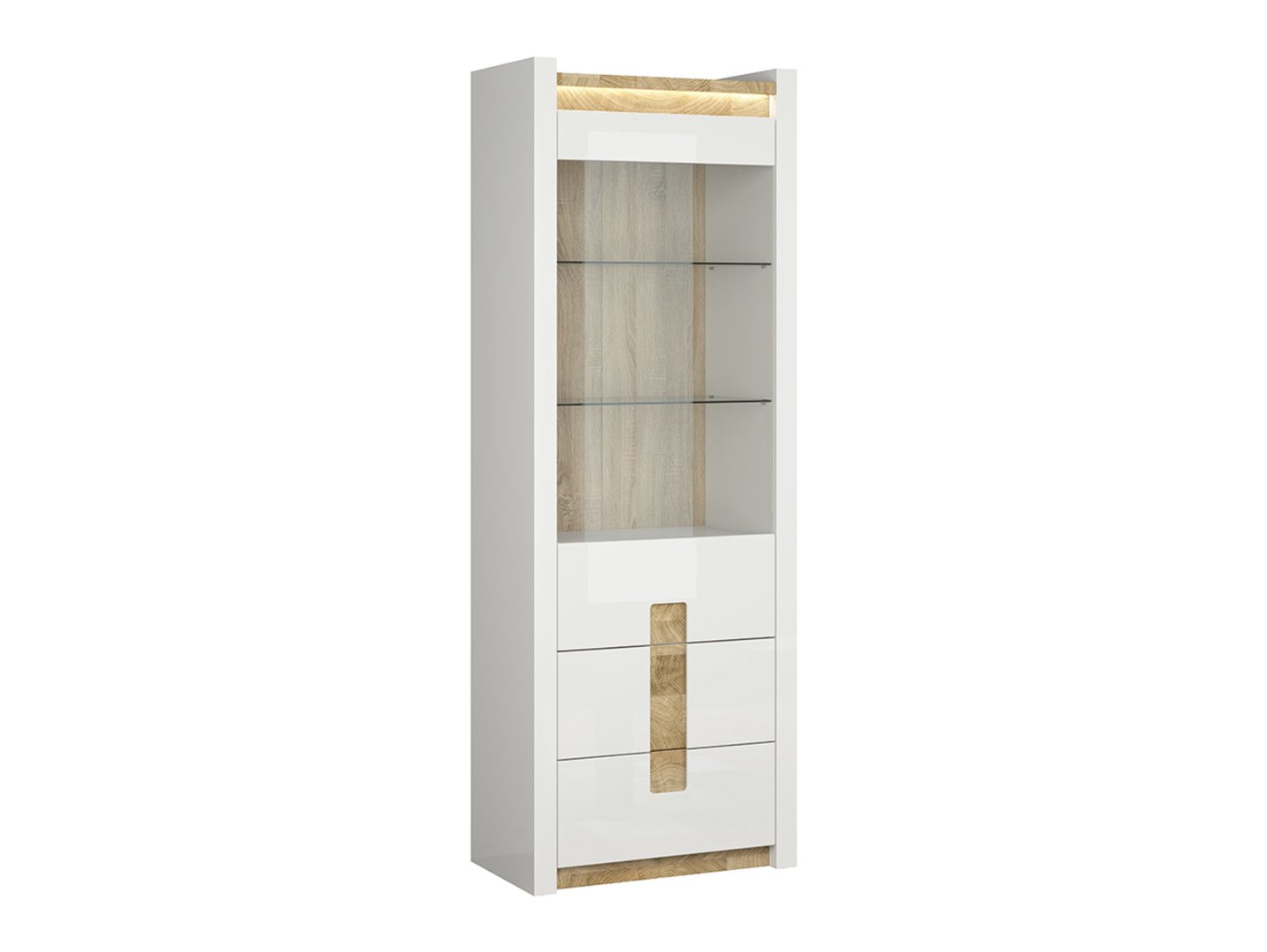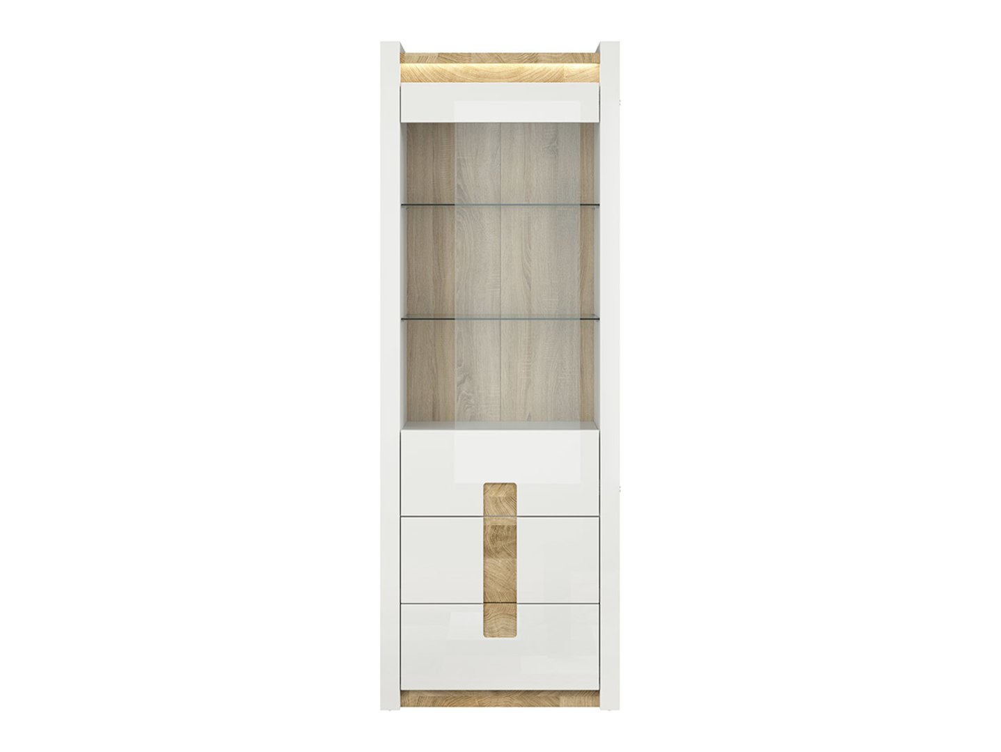 Код товара S420-REG1W2S-BIP/DWM/BIP Символ ZM EAN Ширина 72 см Глубина 41,5 см Высота 201,5 см Коллекция Alameda Цвет белый глянцевый/вестминстерский дуб/белый глянцевый Оттенок белый Стиль современный Количество дверей 1 дверь Количество ящиков 2 ящика Ручка без ручек Освещение с подсветкой Производитель Black Red White Тип мебели Полки и витрины НДС 23% EAN 5906123946599