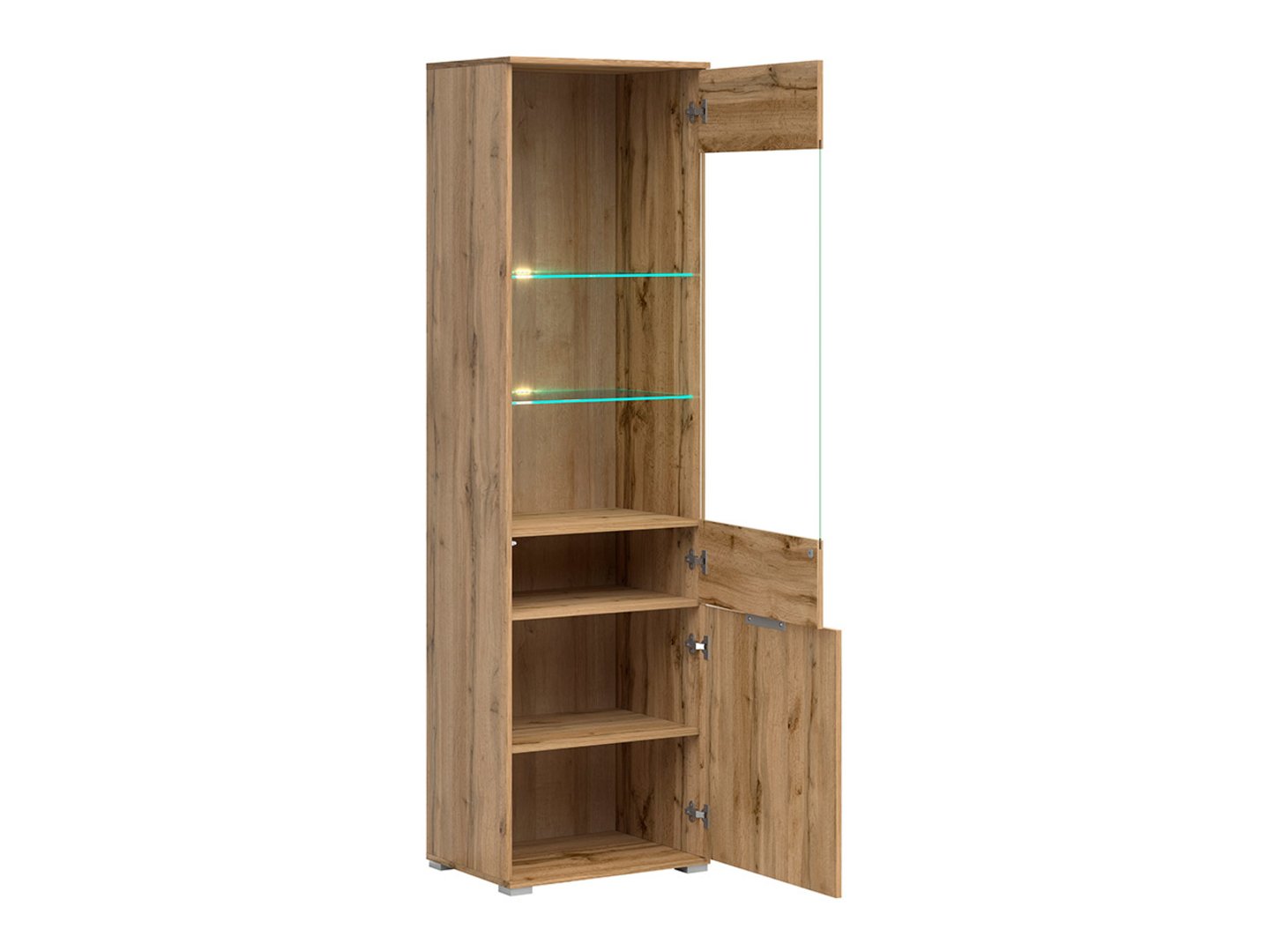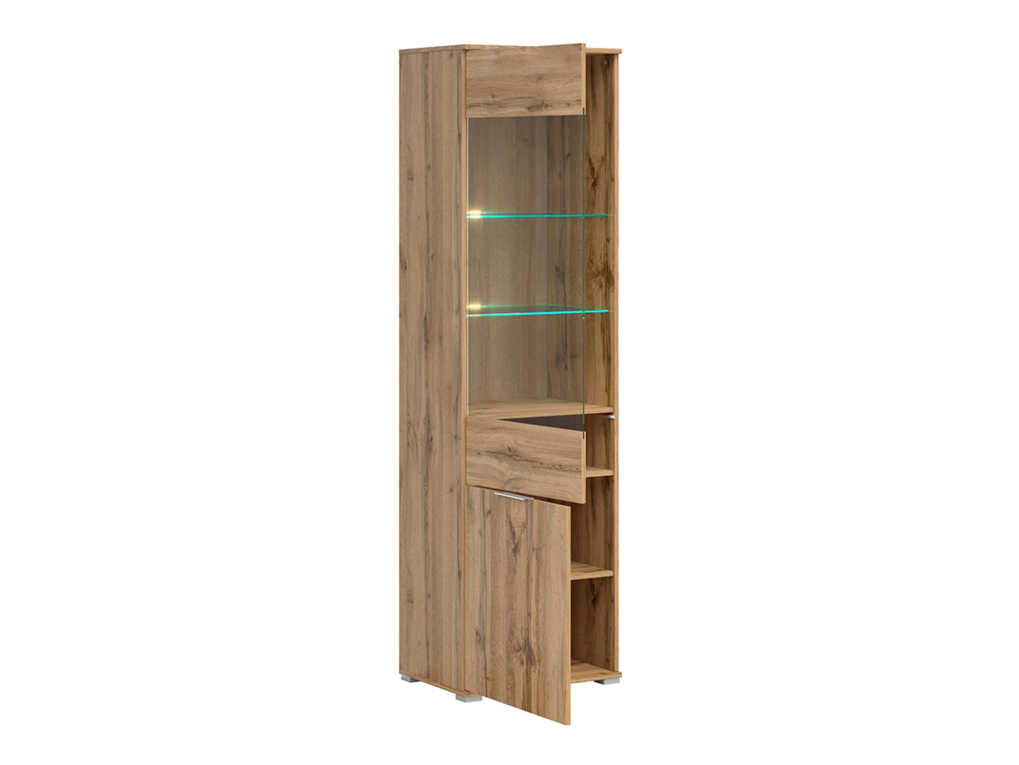 Витрина Zele – покажите все, что хотите. Если вы мечтаете об элегантном и функциональном дополнении к вашему современному интерьеру, витрина Zele оправдает ваши ожидания. Коллекция Zele известна своим минималистичным дизайном и современными решениями, и витрина Zele – прекрасный пример такого подхода, предлагающий достаточно места для демонстрации и хранения. Высокая витрина Zele была создана с учетом потребностей гостиных и столовых. Ее стеклянная передняя панель идеально подходит для демонстрации ваших любимых предметов, коллекций или декоративных вещей. Нижний шкаф предлагает место для хранения различных предметов, помогая поддерживать порядок в вашем интерьере. Безопасность вашей семьи – наш приоритет, поэтому мы использовали прочное закаленное стекло в витрине Zele, гарантируя долговечность и безопасность. Вы можете быть уверены, что ваши экспонаты будут в безопасности. Витрина Zele предлагает широкий выбор цветов. Вы можете выбрать корпус из натурального дуба, который добавит тепла и характера интерьеру, а глянцевые белые фасады – элегантности и современности. Это сочетание делает витрину центральным элементом вашего интерьера. Минималистичная ручка, интегрированная в кромку фасадов, подчеркивает характер витрины Zele, придавая ей современный и элегантный вид. Механизм открывания нажатием обеспечивает легкий доступ к содержимому шкафа, делая его использование простым и удобным. Если вы хотите добавить современный штрих, витрину Zele можно оснастить энергоэффективной подсветкой, доступной в качестве опции за дополнительную плату. Это идеальный способ выделить выставленные предметы и создать уютную атмосферу в вашем интерьере. Вы можете сочетать витрину Zele с другими предметами из коллекции Zele, создавая гармоничное и эргономичное пространство в вашей гостиной. Этот предмет мебели впечатляет не только своим дизайном, но и практичными решениями для хранения и демонстрации. Попробуйте, и вы увидите, как сильно он может преобразить внешний вид и функциональность вашей комнаты.