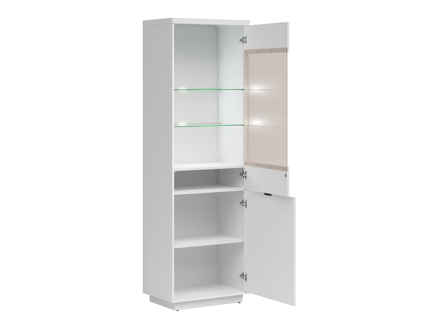 Vienų durelių vitrina su stiklu FORN 64 cm, balta blizgi