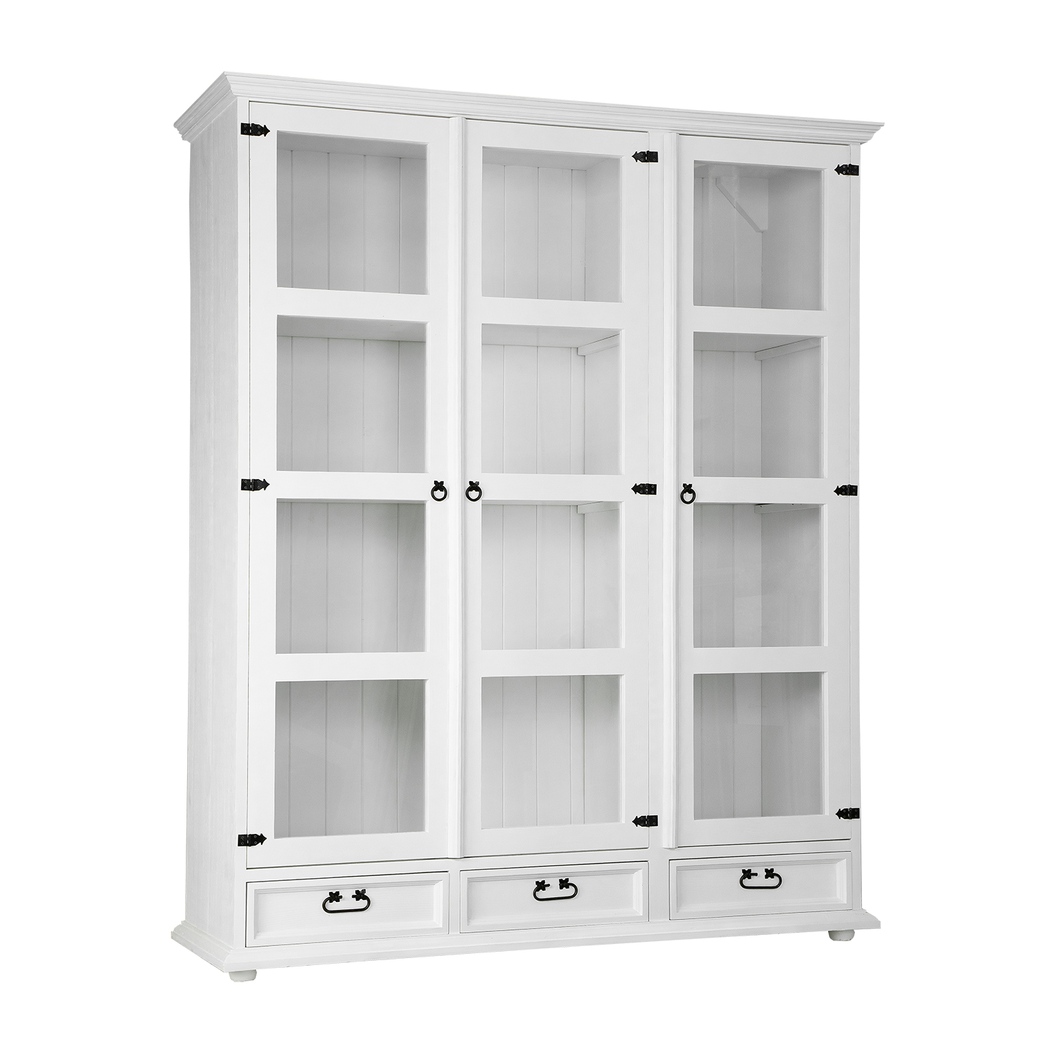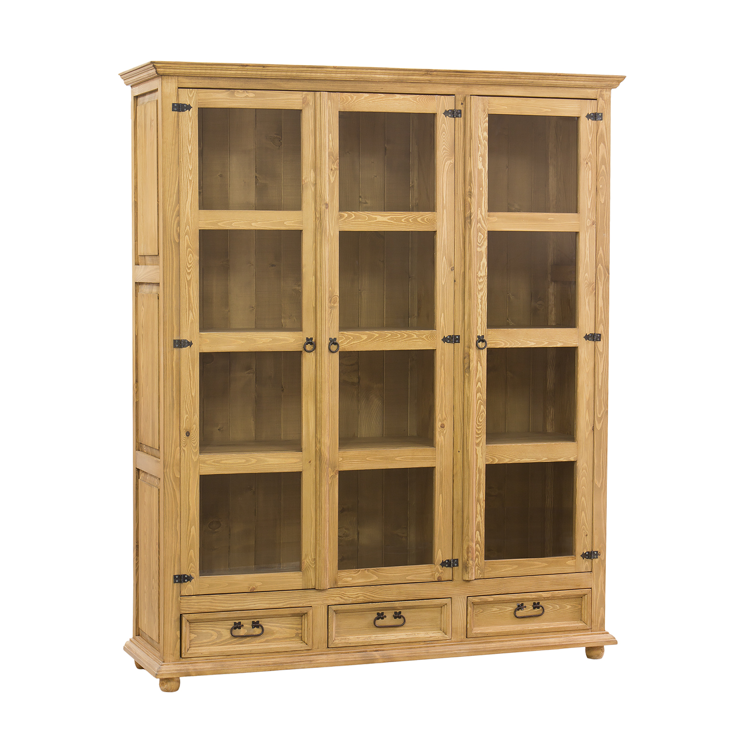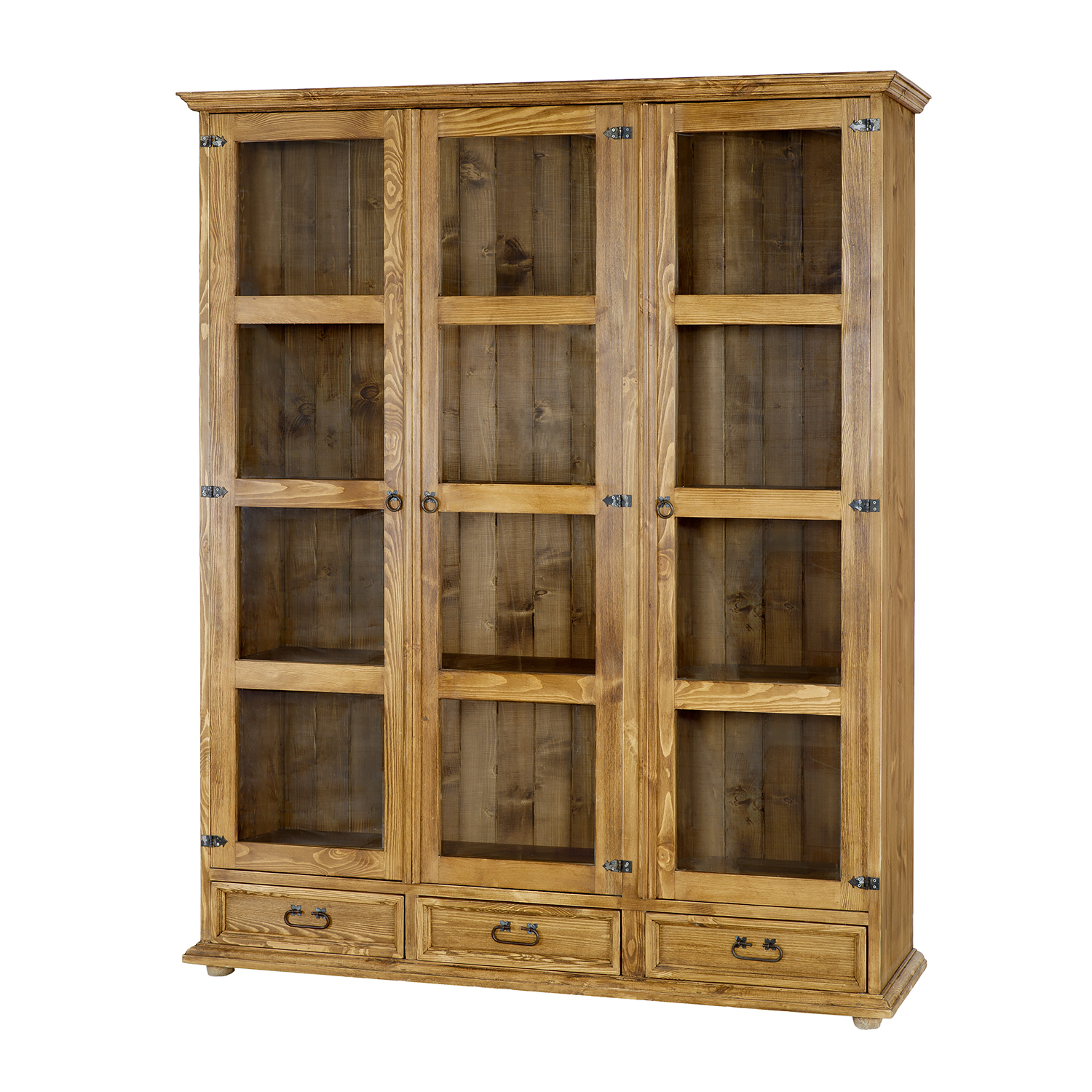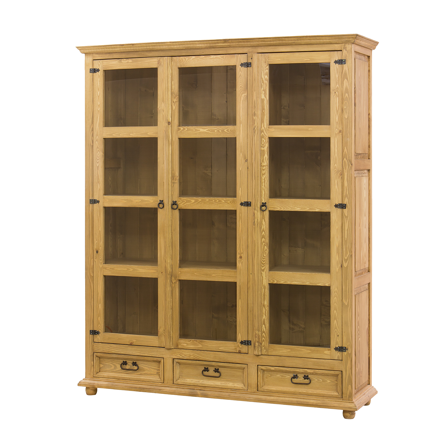 Трехдверный вощеный шкаф KW709/I в версии SLIM, выполненный в деревенском стиле, полностью изготовлен из массива сосны. За стеклянными дверцами расположены три полки, идеально подходящие для хранения столовых сервизов, украшений, сувениров или книг. В нижней части шкафа находятся три выдвижных ящика на деревянных направляющих. Шкаф отличается прочной и надежной конструкцией. В его изготовлении использованы металлические ручки и петли ручной работы с эффектом состаривания. Шкаф KW709/I добавит неповторимую атмосферу любому интерьеру, наполнив его теплом и уютом. Его функциональность значительно упростит хранение.