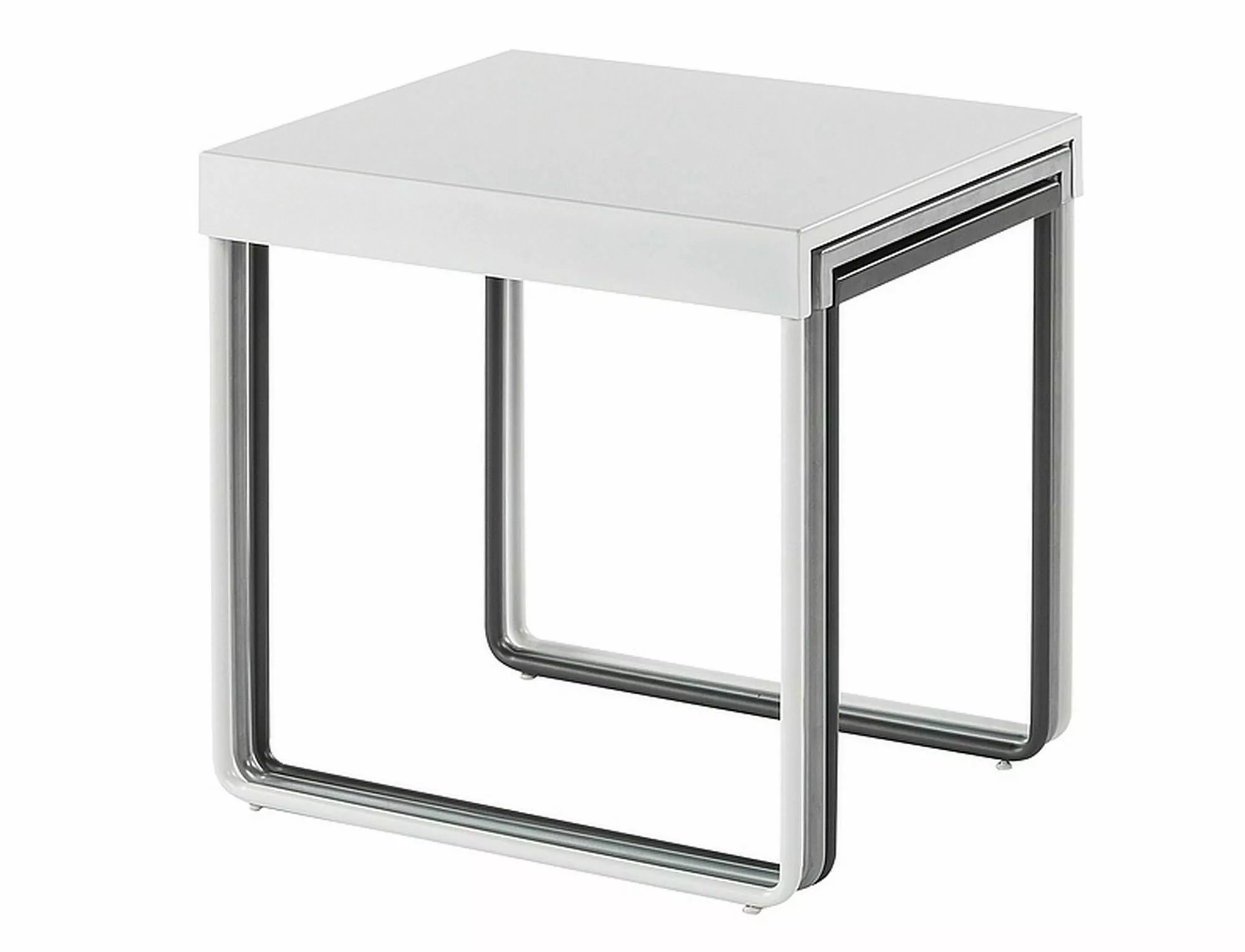 Комплект журнальных столиков, столешница: металл, каркас: металл, цвет: темно-серый, серый, белый. Размеры столиков меньшего размера: 1. 45×35 см, высота 48 см; 2. 45×31 см, высота 46 см.